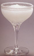 ミキサーでブレンドし、グラスの縁に塩をつけスノー・スタイルにしたグラスに注ぐ。