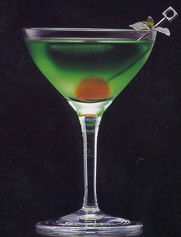 カクテルピンにさしたマラスキーノチェリーとミントの葉を飾る。