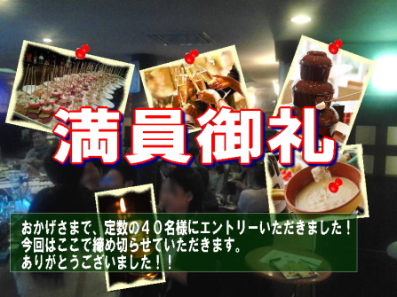 | 12月24日(木)はマーモスでみんなでクリスマス会をやりましょう(^^) この日はみんなでゆる〜く盛り上がって男女どちらも関係なしにたくさんの人たちと知り合っちゃいましょう♪ キャンドルライトなのでいつもと違う自分を出せちゃうかも♪ 来られた順番にどんどん詰め込んでいく(!?)システムですのでお一人でも気軽に参加できます♪ チョコレートファウンテンやチーズフォンデュ、チキンなどのクリスマスっぽいフードメニューをはじめ、ワイン・スパークリングワインやカクテル・ノンアルコールカクテルも多数! 是非オリジナルカクテルなんかも作ってみて下さい♪ みんなで盛り上がれるゲームも色々やっちゃいますので、今年のクリスマスイブはマーモスでどうぞ! 【要項】 場所 マーモス 日時 12月24日(木) PM7:00会場 PM7:30スタート 参加できる人 独身者のみ 年齢20歳〜45歳まで 最大参加人数 40名 参加費 男性¥3,500 女性¥2,500 ゲームあります! ドレスコード バーに入店できる程度の服装 参加締切 12月20日(日) 【マナーその他】 ・男女関係なく仲良く交流しましょう♪ ・相席したらみんなで乾杯♪ ・お酒の強要はしない。 ・失礼なことは言わない。 ・連絡先の交換は仲良くなってから。 ・タバコは喫煙スペースで。 |