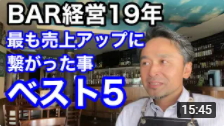 人として大きく成長できる・・・老若男女問わず多くのお客様と接することにより、必然的にコミュニケーション能力にも磨きがかかります。もちろん失敗する機会も増えますがそれも経験であり、日々勉強、毎日実践。思いやりやおもてなしの精神も養われ、お客様に学び、お客様を客観的に見ることで反面教師となる事もあります。向上心が高い人にはうってつけの仕事だと思います。逆にいえば人として成長できない人、向上心が無い人はバー経営は向いていません。 |