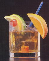 オレンジ、レモン、ライム、マラスキーノチェリーなどを飾り、マドラーを添える。